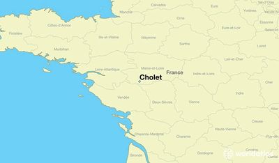 The commune of Cholet is situated 50 kilometres SE of Nantes, in NW France, in the department of Maine-et-Loire and in the region Pays de la Loire. The commune itself, with 56,000 inhabitants, is the centre of the Cholet Agglomération (107,000 inhabitants).